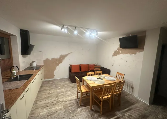 이 100m^2 아파트는 요한 바오로 2세 크라쿠프 발리체 국제공항 공항에서 85km 떨어져 있습니다. 손님들이 테라스에서 음료를 즐길 수 있으며 식사를 할 수 있습니다. 일광판, 일광판, 소풍 공간도 포함되어 있습니다.
